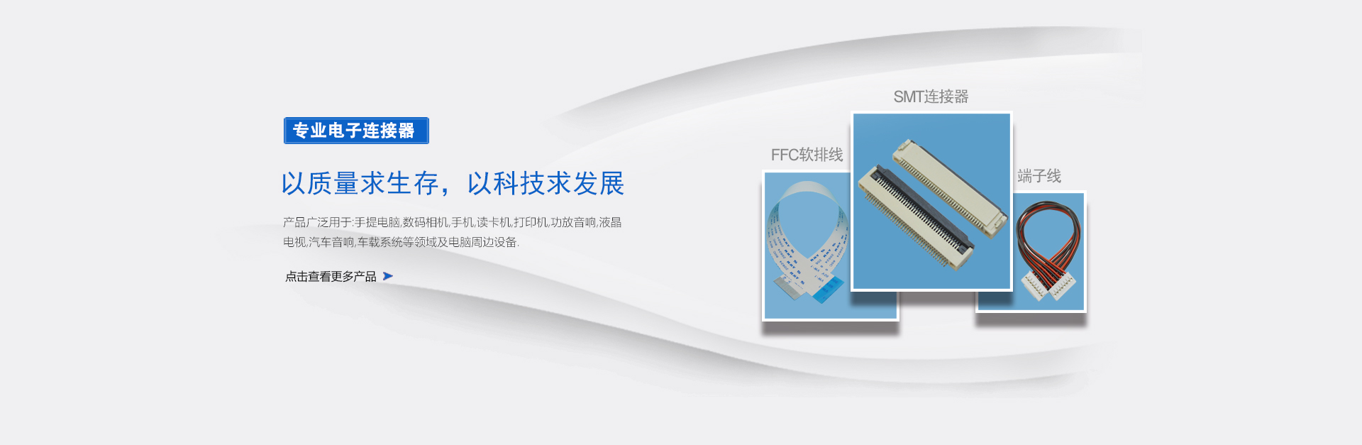 經(jīng)營項(xiàng)目:FPC連接器、接插件、光纖連接器、FFC排線、端子線束等。間距有:0.3mm/0.5mm/0.8mm/1.0mm/1.25mm/1.5mm/2.0mm/2.54mm/3.96mm.......并可以為您開模定制各類精密連接器及配套線束.